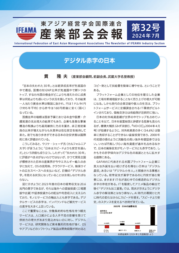 来年10 月にはIFEAMA 国際大会が河海大学(中国南京市)で「変わりゆく世紀におけるアジアの経営革新」を統一テーマとして開催されます。産業部会セッションを設定するよう要望を出しており、なるべく早く皆様にも情報提供を行っていきたいと思います。